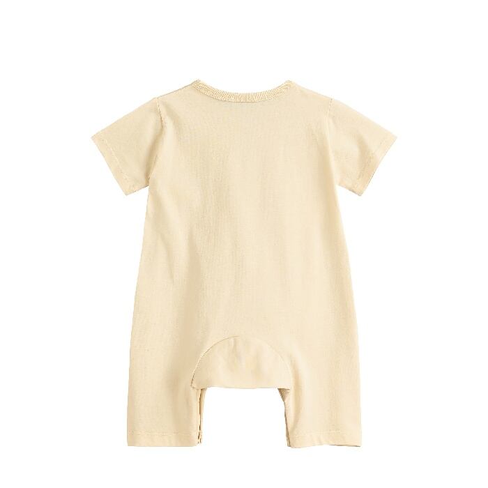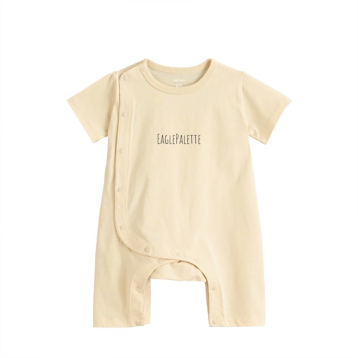 スナップボタンをサイドに配置し、赤ちゃんのおなかに負担のかからないゆったりとしたデザイン。