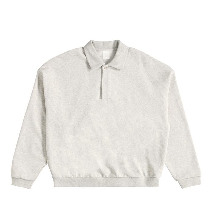 15.6オンスの圧倒的な肉厚生地に、真冬でも頼れる裏起毛仕様。ミニマルな1つボタンのポロ襟で仕上げた、洗練された大人のためのスウェットポロシャツです。素材の良さを最大限に引き出す、計算されたオーバーサイズシルエットが魅力です。